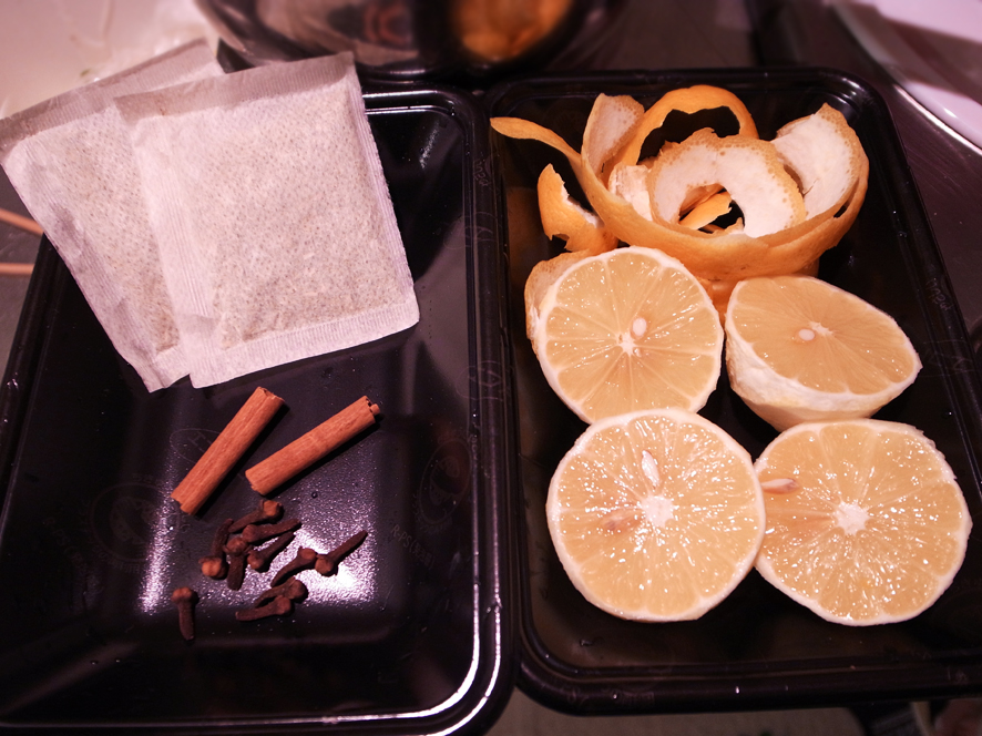 レモングラスのティーバックとシナモンスティックを入れました。)